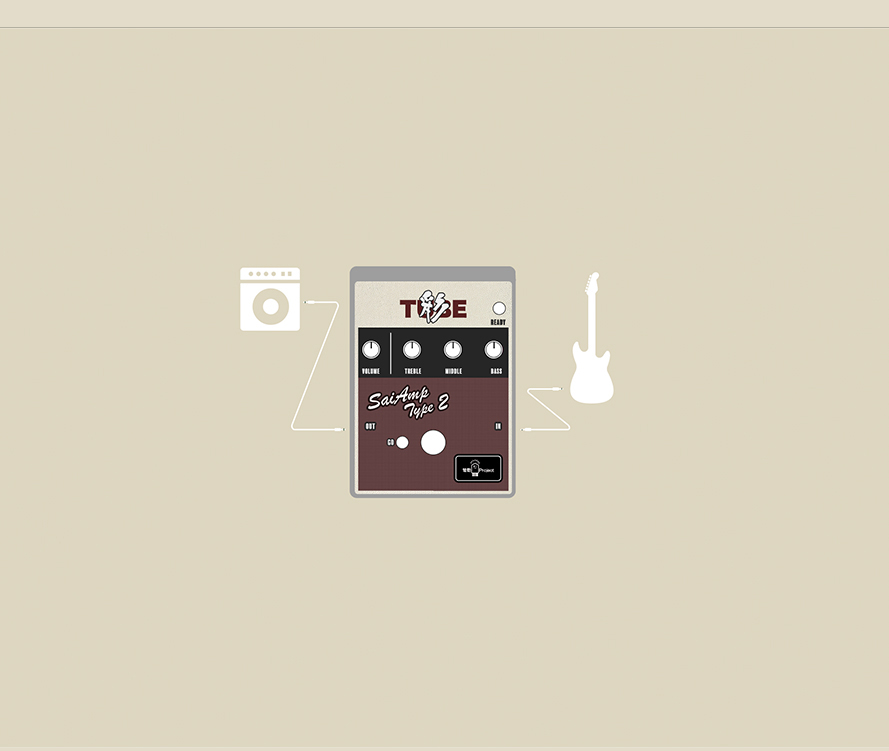 TYPE II は謂わば「アンプシミュレーター」です。典型的な真空管ギターアンプの音作りのコア部分があり、TYPE II 単独でサウンドが完成します。そのためギターアンプのRETURN ジャックに直接プラグインすることが望ましい使い方になります。